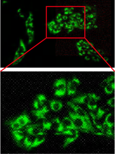 Mitochondria labeled with fluorescent dyes